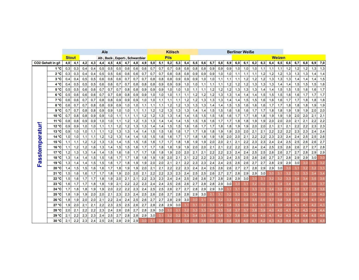 E.g. Pils approx. 5.1 g/l, barrel temp. 19 °C -> 2 bar